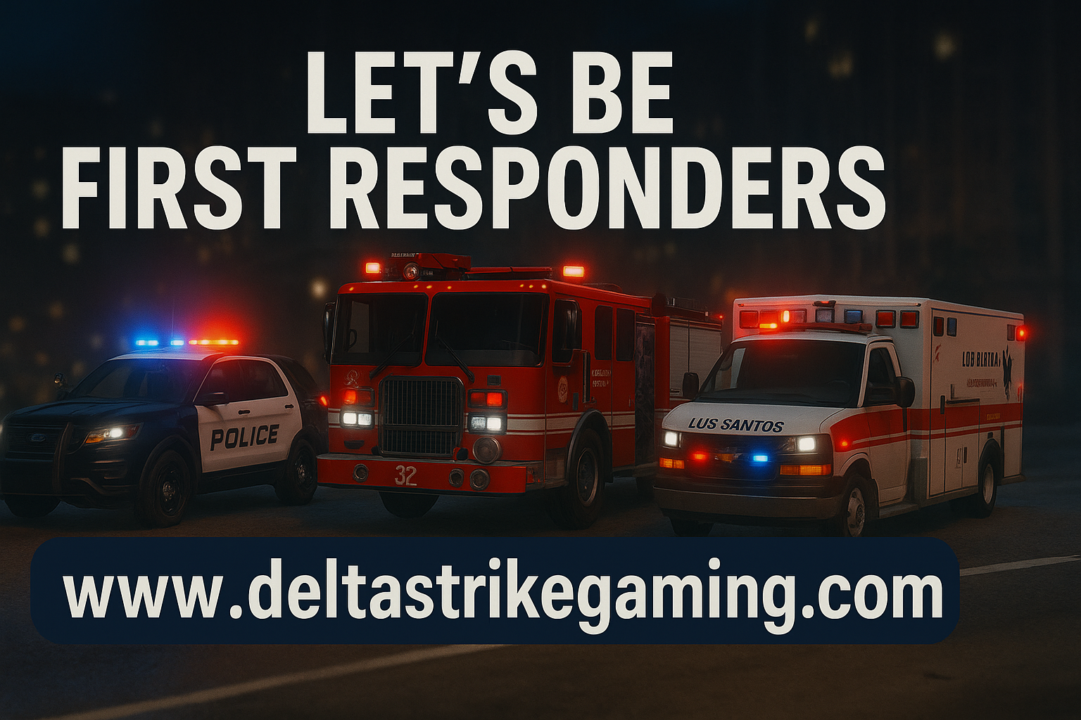Let’s Be First Responders is a modded GTA V roleplay server powered by FiveM, offering a dynamic and immersive experience for players who want to step into the shoes of real-world heroes. Whether you're patrolling the streets, responding to 911 calls, or living everyday civilian life, our server provides the tools and freedom to create your own story.